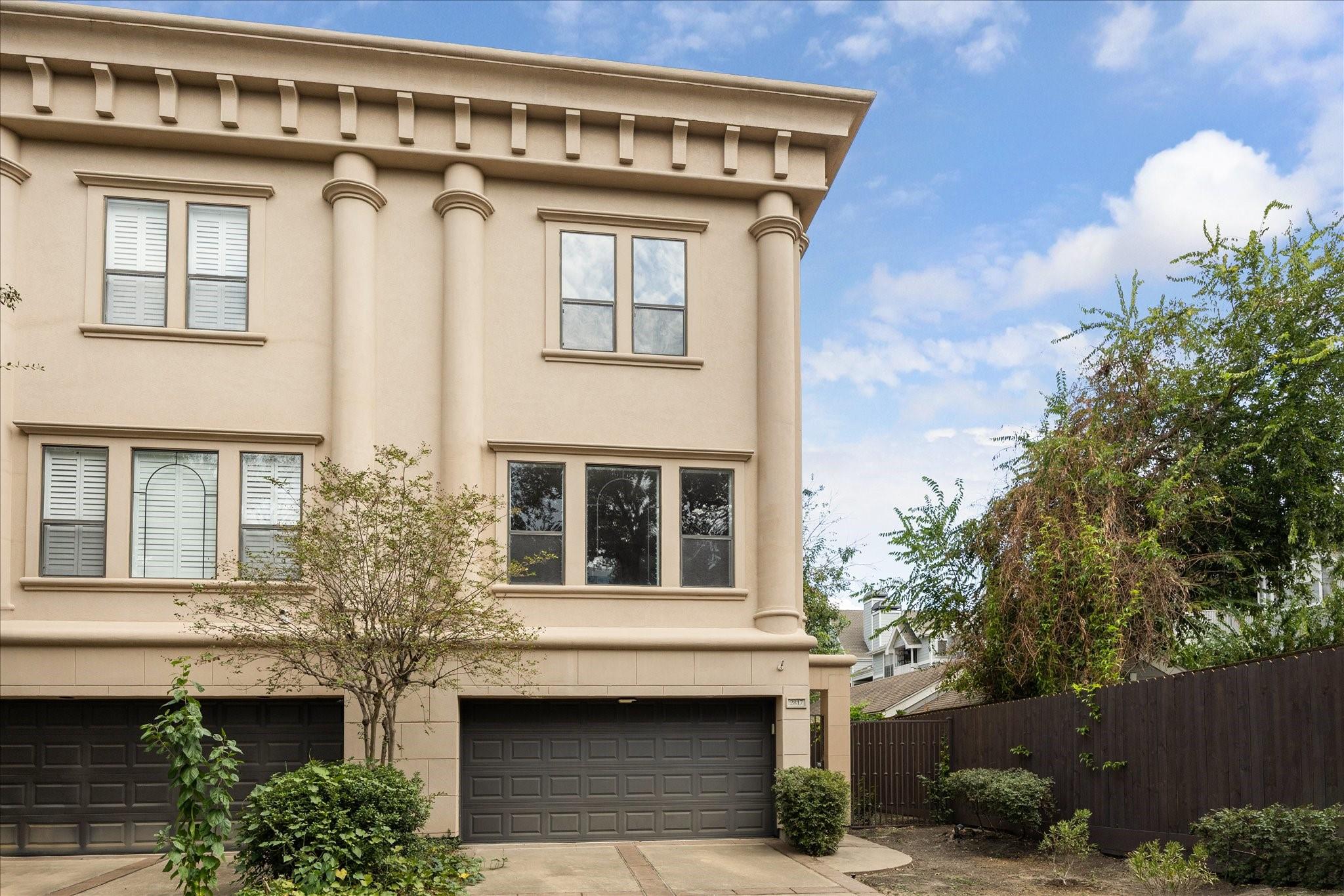 Situated in an exclusive gated community in Montrose, this luxurious home features 12 ft. ceilings, a gas fireplace, and modern built-in bookcases. The chef’s kitchen boasts high-end Miele appliances, a spacious island, double stacked cabinets, and marble countertops. Hardwood floors, custom shutters, and ample natural light throughout. 4th-floor game room…